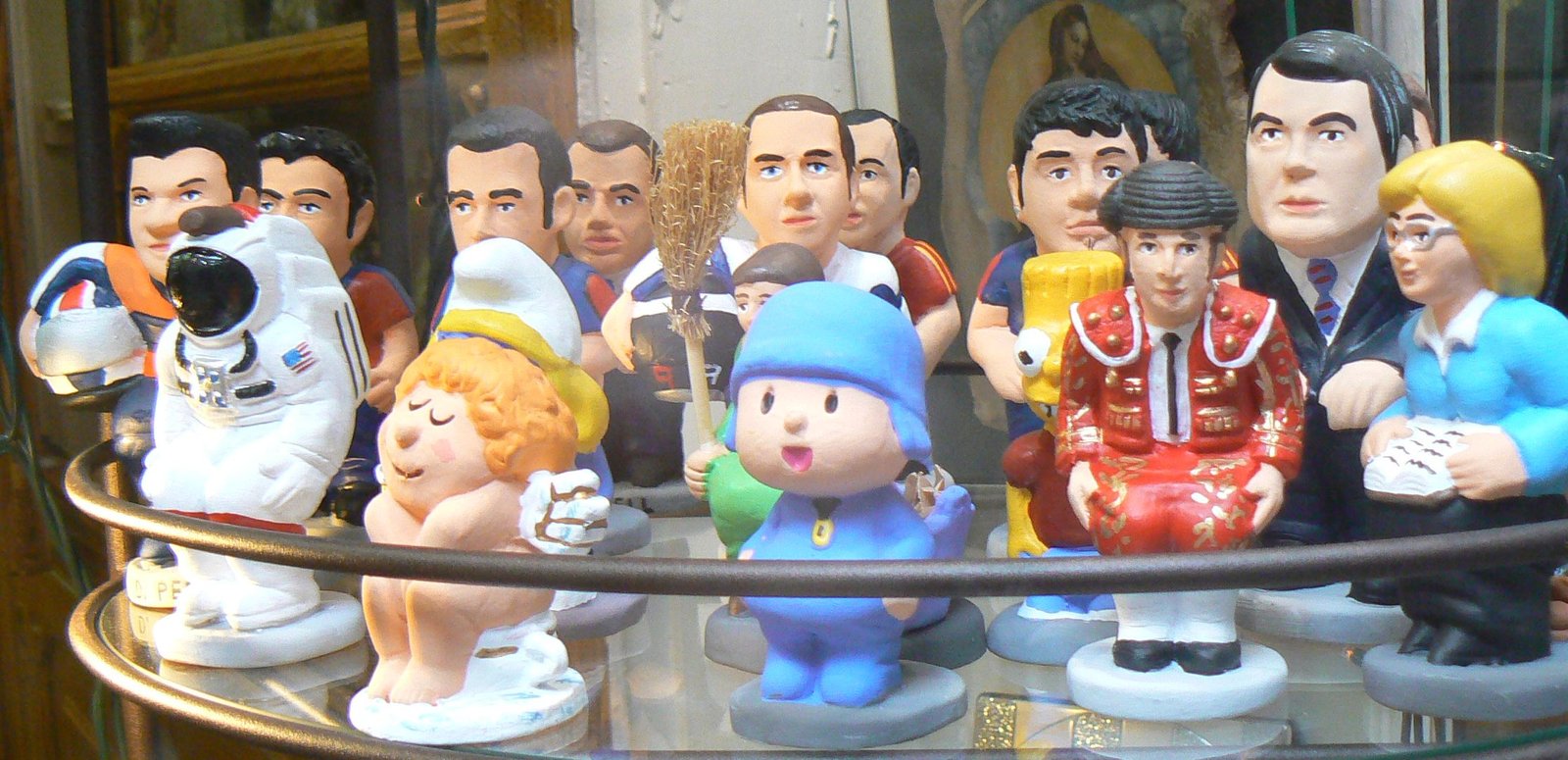 Last but not least, the Caganer. This figurine, originating in Catalunya, translates to ‘The Pooper’ and it has been photobombing the nativity scene since the late 17th century. It’s exactly what it sounds like, a tiny figure, squatting and well.. Pooping. But despite how it might, this is a tradition deeply rooted in symbolism, originally thought to bring fertility and good luck, through the act of ‘fertilizing’ the earth and bring about good harvest in the coming year. It also symbolises equality and humanity, bringing a touch of humor to the nativity scene and reminding us that we’re all equal (king or shepard). The original guy is a traditional Catalonian peasant, wearing a red cap known as the barretina, but throughout the years it has transformed, and modern versions of the Caganer have been created from famous figures including footballers and film stars- you might have even spotted some featured in Fallas!