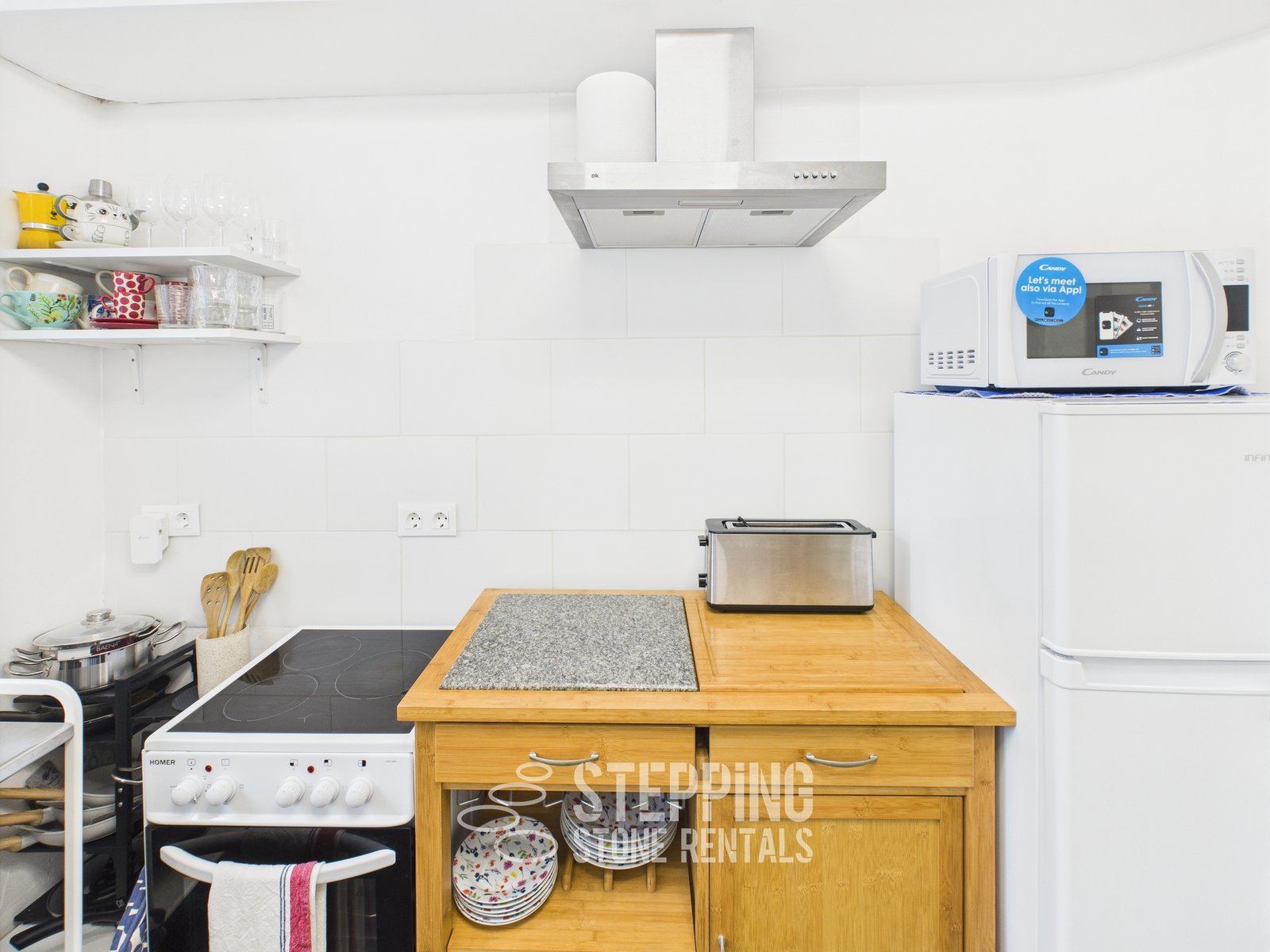 Jump back to your college days with the hippie kitchen! Fully equipped and functional, although reminiscent of those early college years when modern and new weren't a priority and pieced-together functionality was "cool". It's fully equipped with coffee machines, toaster, microwave, Brita, hand blenders, etc.