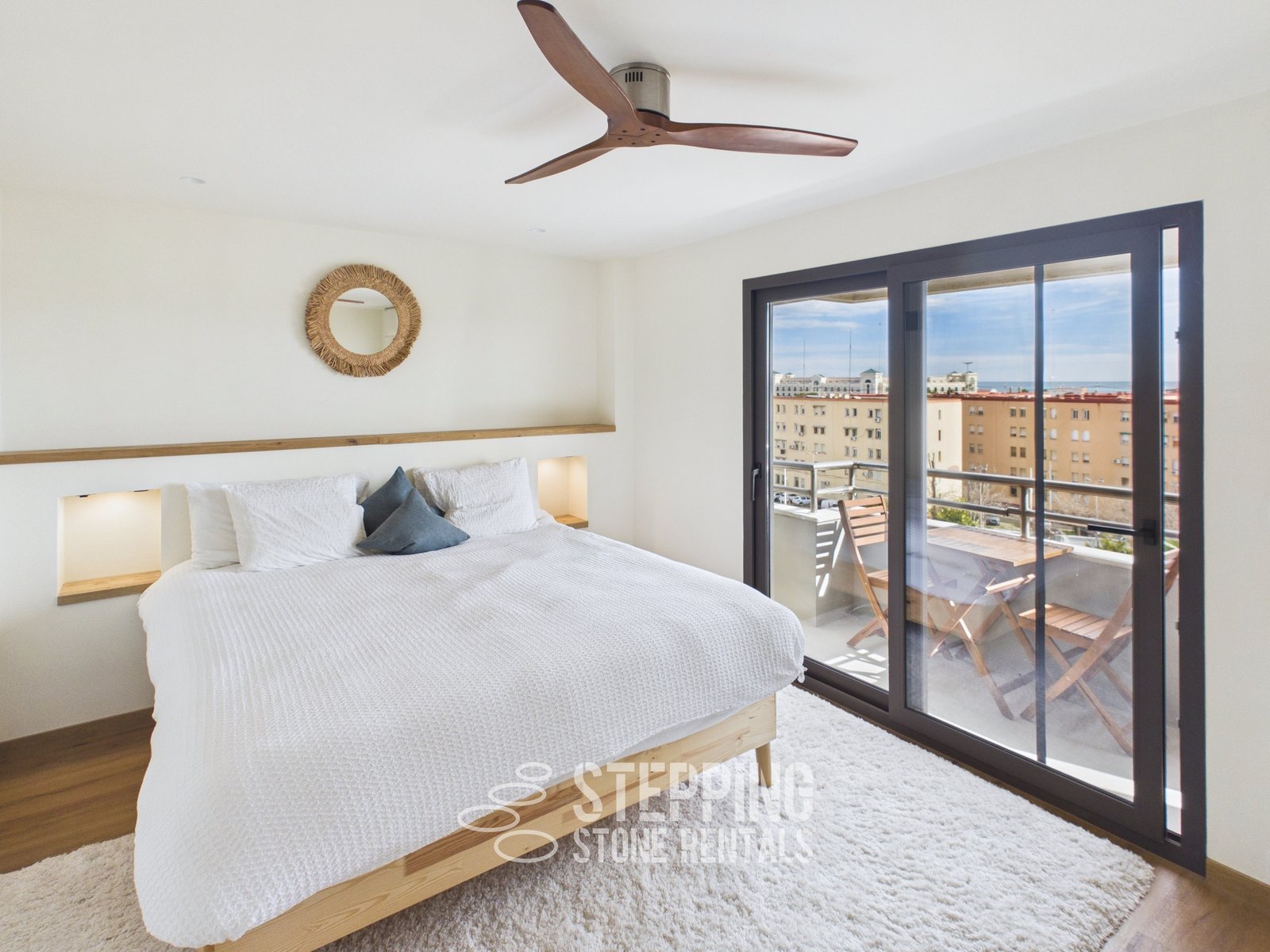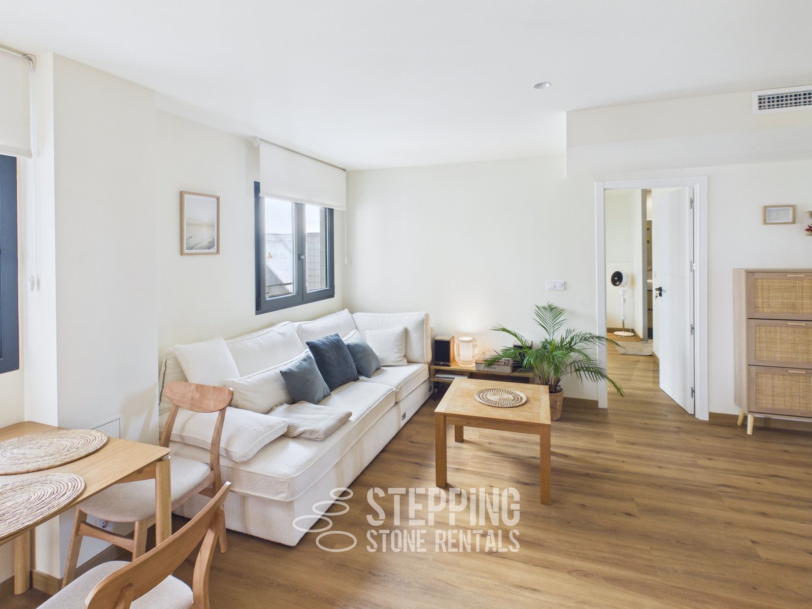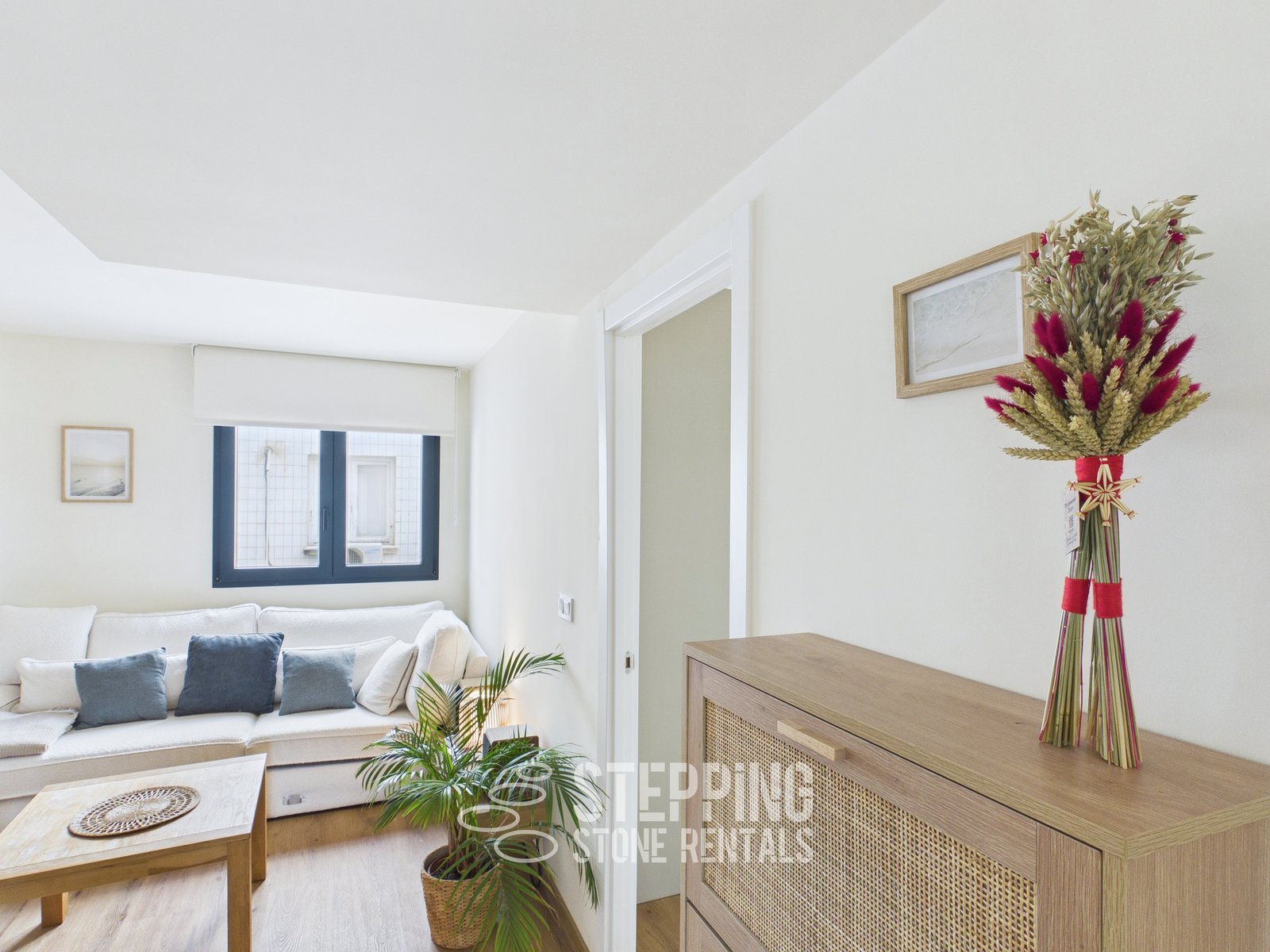 El Nido (The Nest) is made for those who want to be close to the beach without giving up the comfort and quality of a fully renovated city apartment. Finished and furnished with care, it offers two comfortable en-suite bathrooms, a calm, well-designed interior, and a spacious terrace with sea views that truly set it apart. It’s an ideal fit for couples or small families, with excellent connections via tram, metro, and bus.