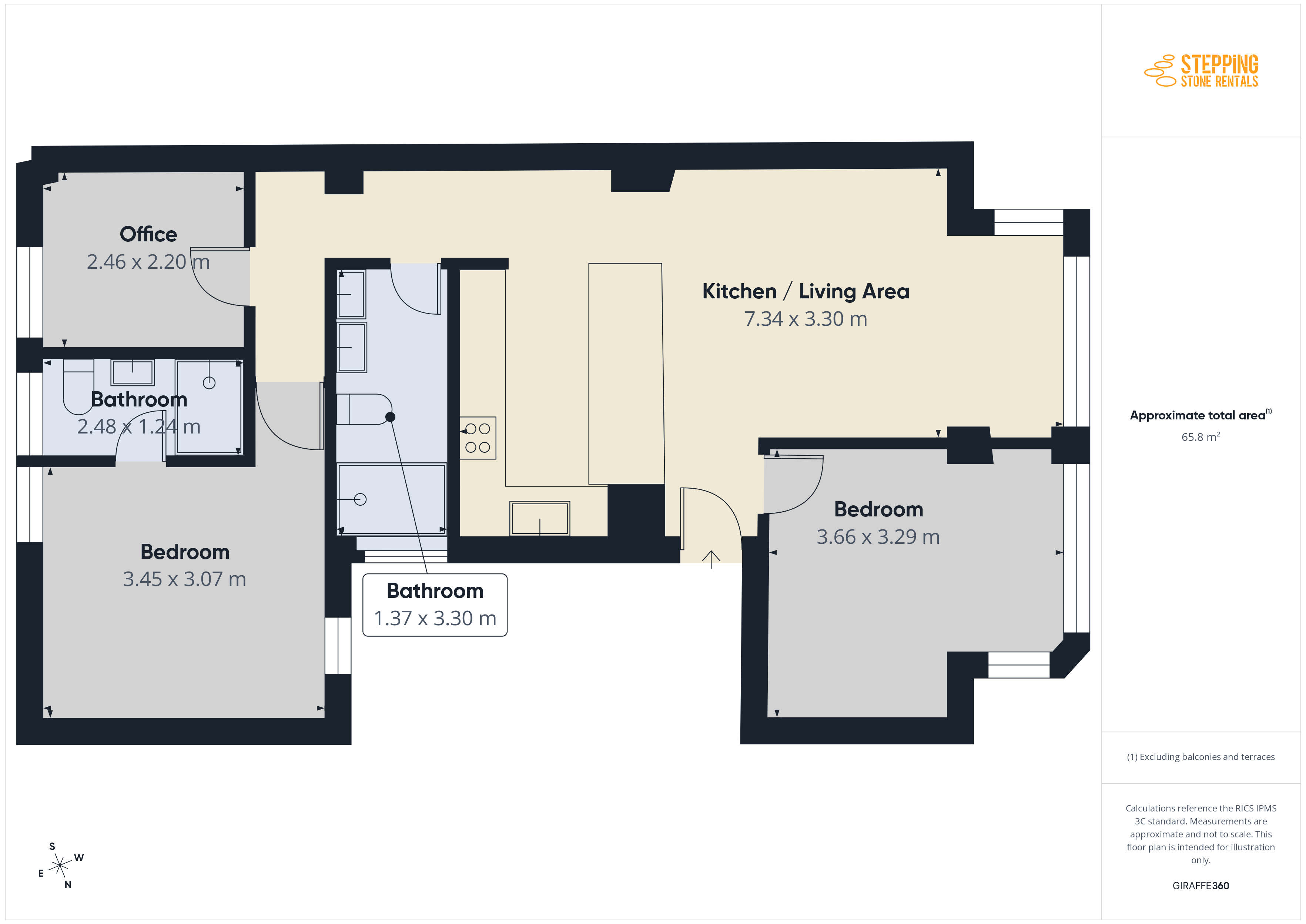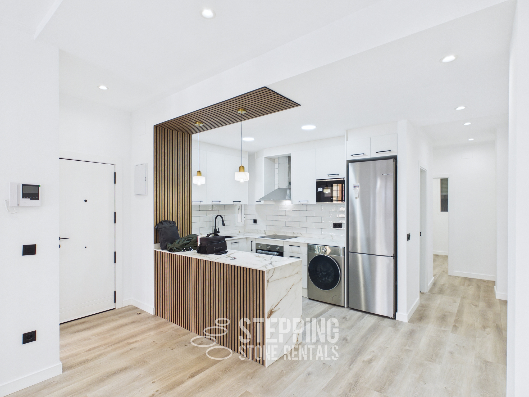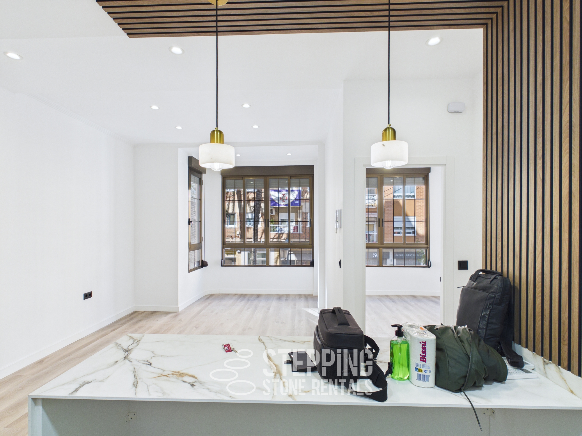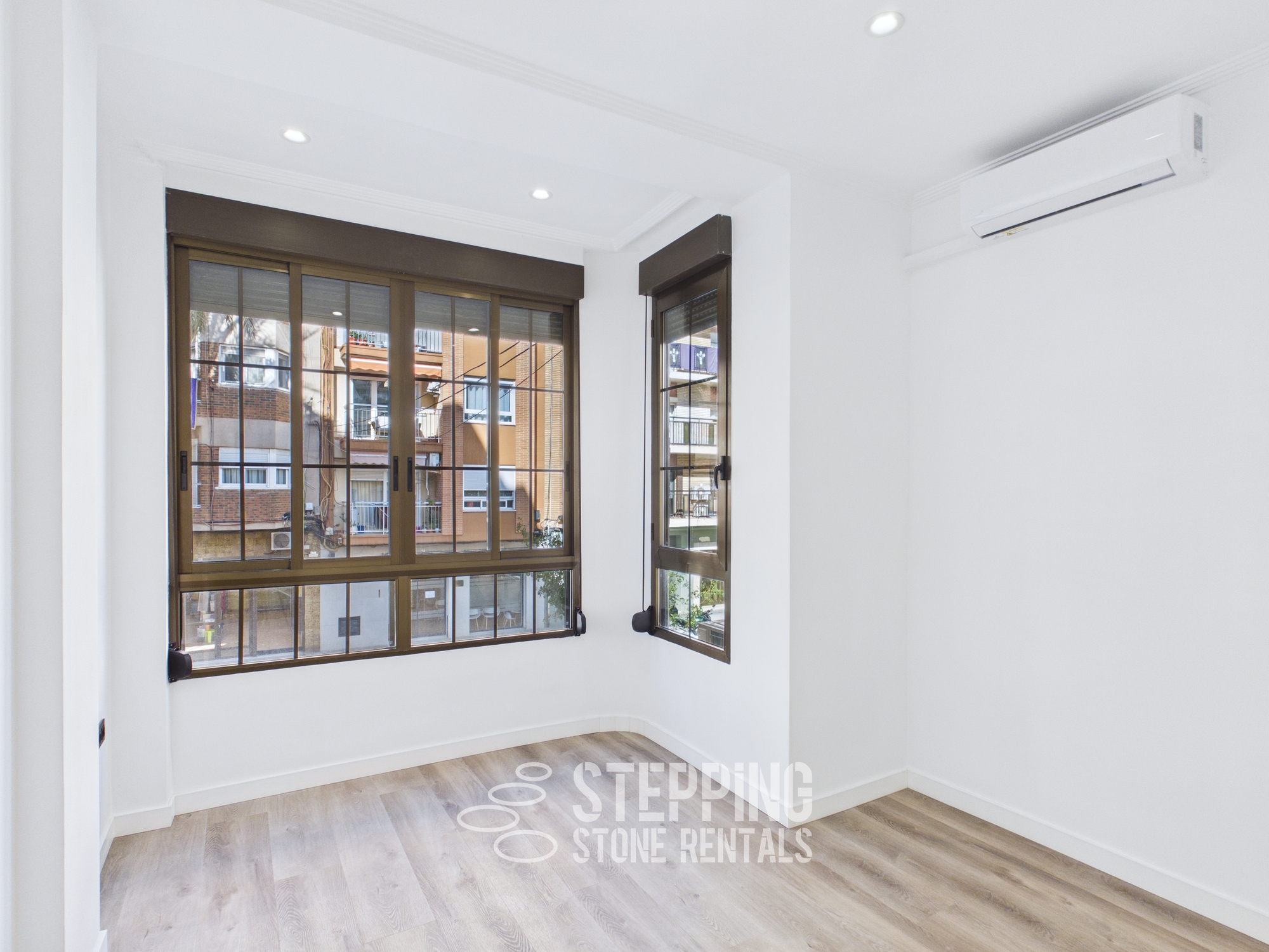 Amazing natural light from all sides. AC in all the rooms, 2 doble bedrooms of which 1 has an ensuite bathroom, and 1 office with a fold-out sofa chair.