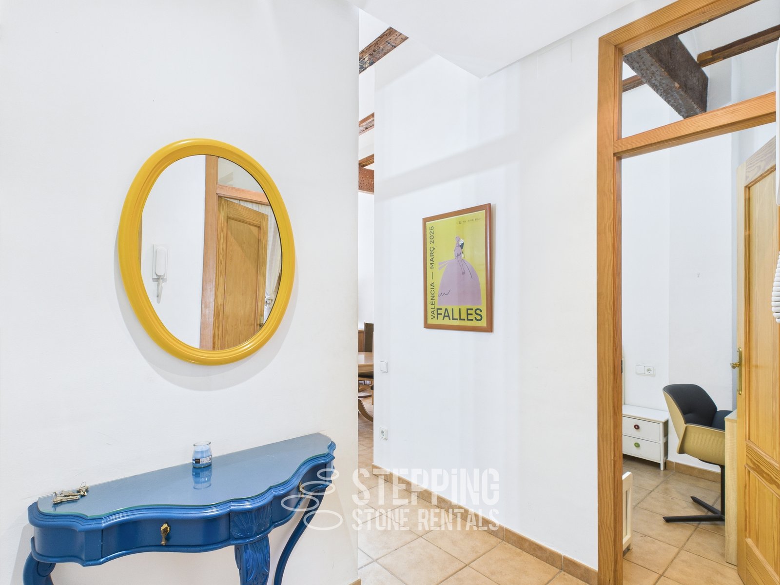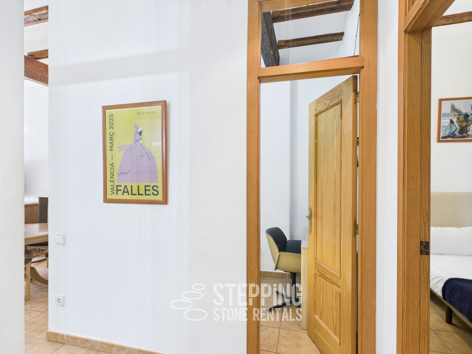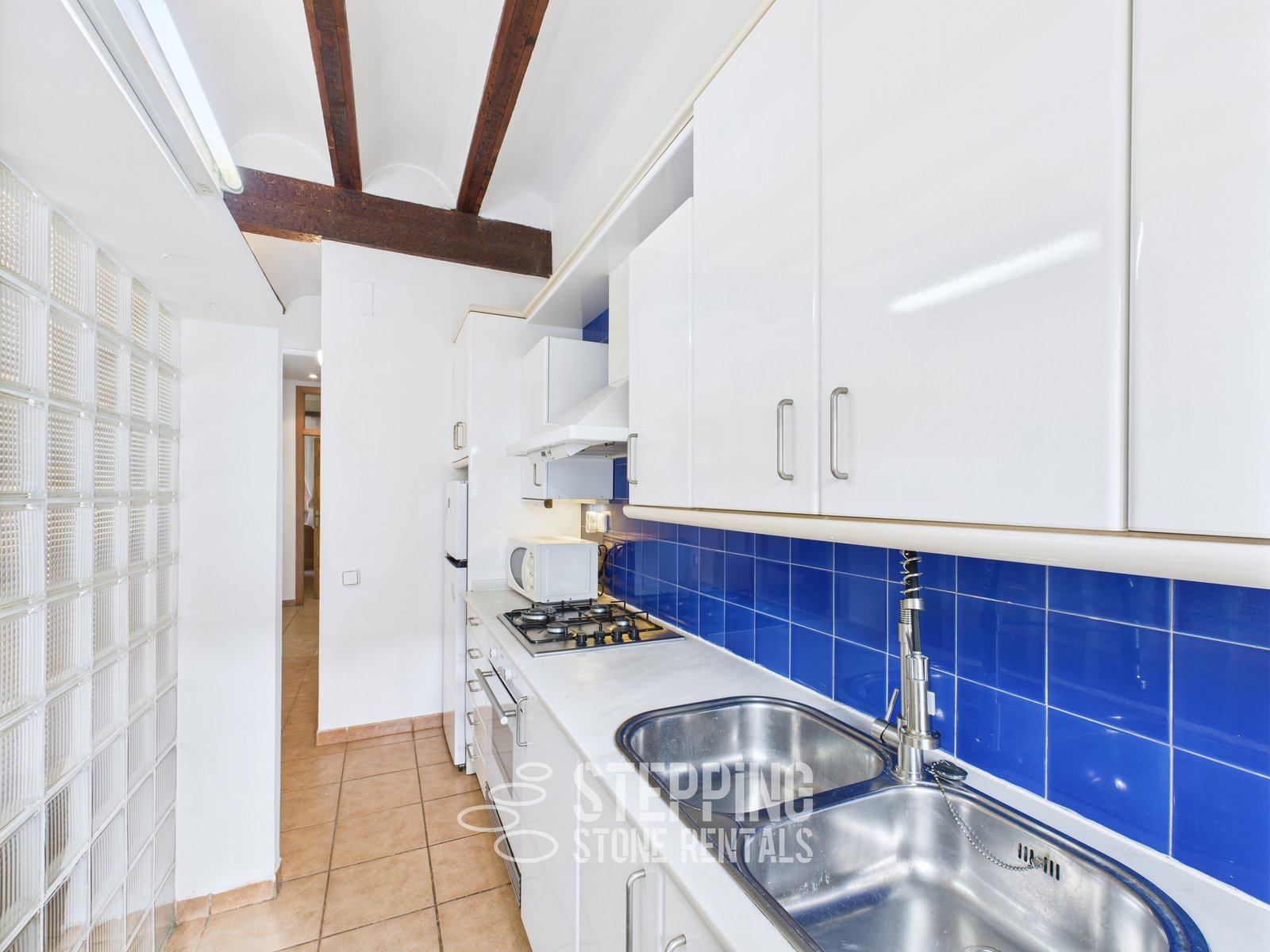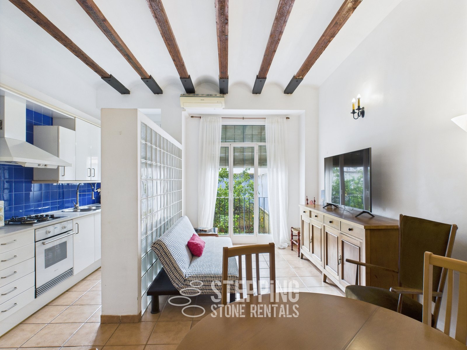 The apartment has cottage-style furnishings with traditional Valencian touches. It is ideal for a couple or a family with a young child. It has A\C in the living room and WIFI throughout. Traditional style in great condition.