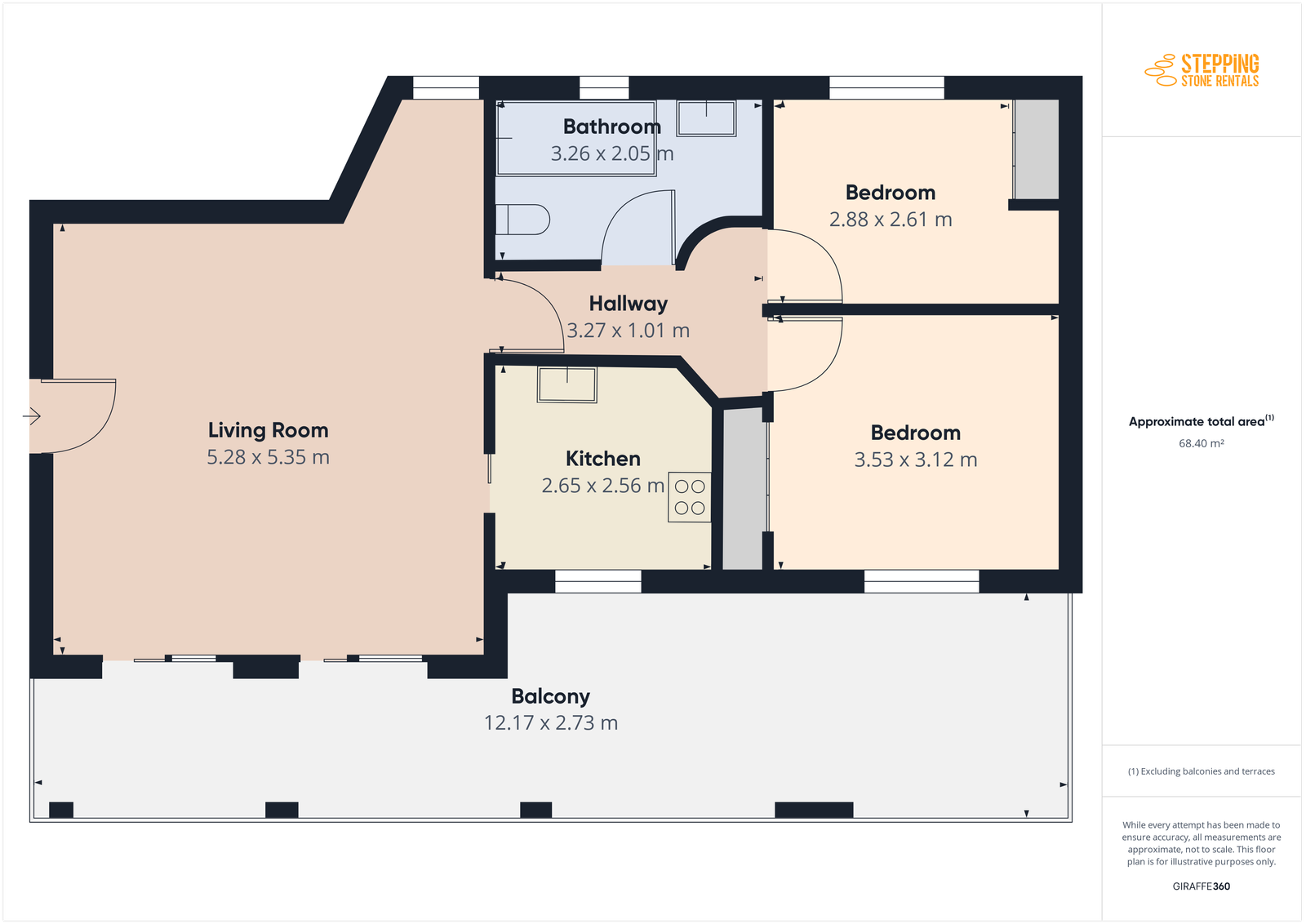 Of course the apartment is fully furnished and equipped with a cubby hole office in the corner of the living dining room and fast internet of course. There are two double bedrooms, a large bathroom with bath and shower and a decent sized fully equipped kitchen.