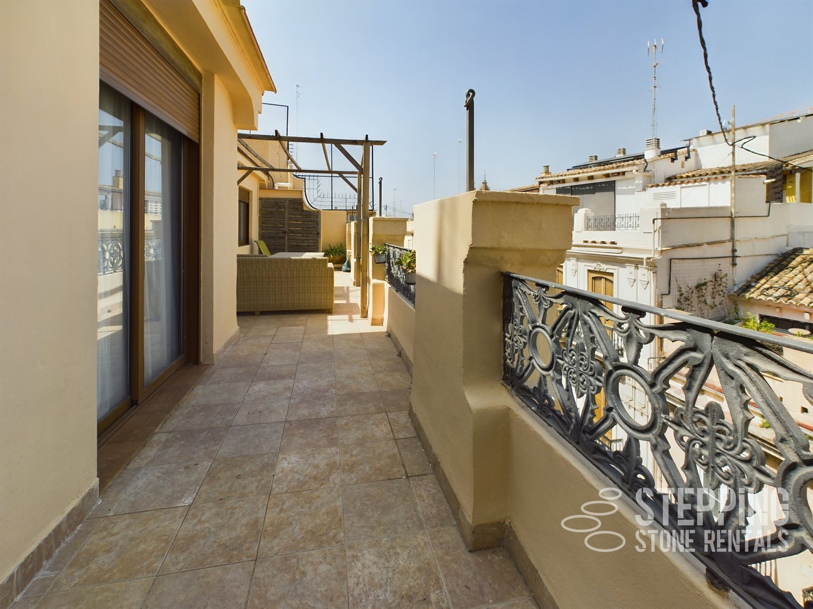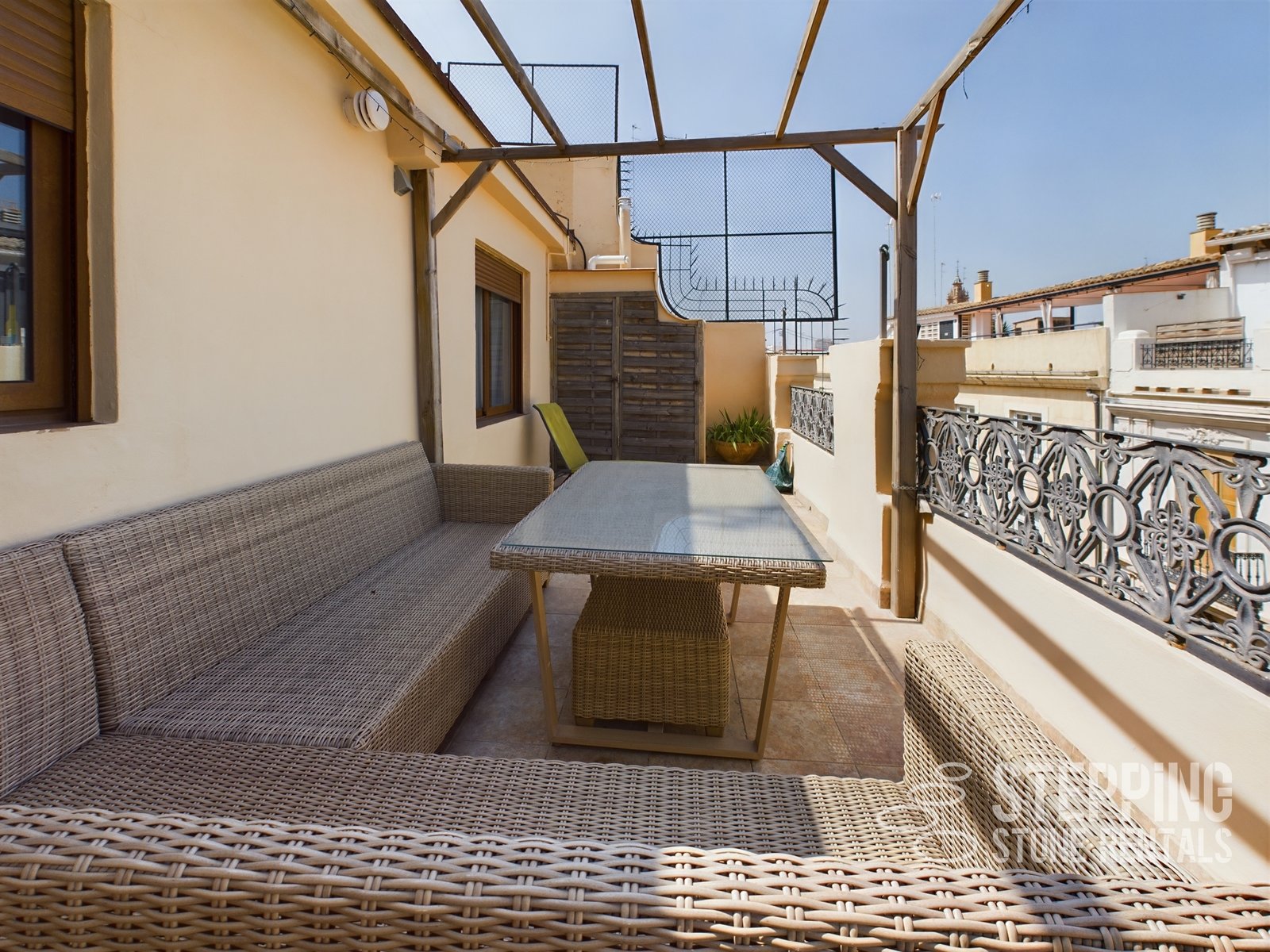 La Seu in the heart of Valencia just a few metres away from the riverbed and a short stroll to the cathedral this two bedroom apartment with a large and rather fetching terrace is an amazing place to land with your Stepping Stone Rental. Here you will have everything at hand with all of Valencia on your doorstep and a large terrace overlooking the rooftops of central Valencia. You are just a few metres away from the "Turia" riverbed park and have very easy access to plenty of shopping adventures, history and culture.