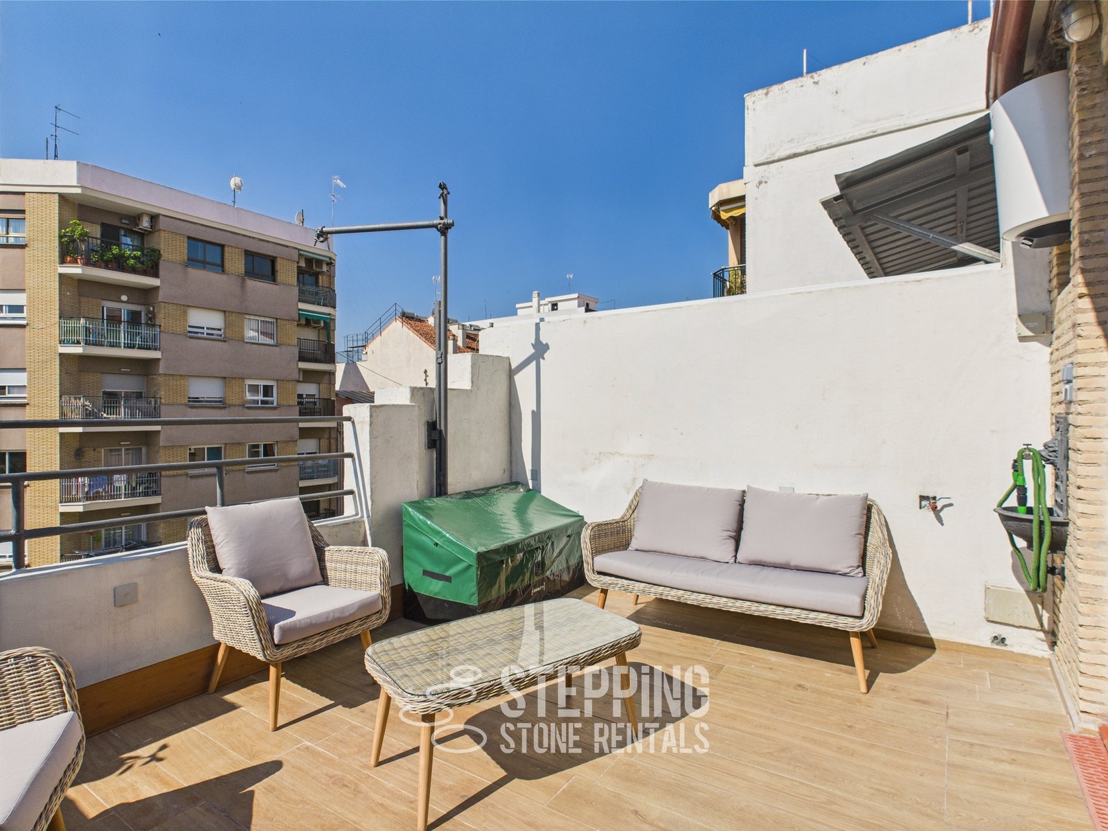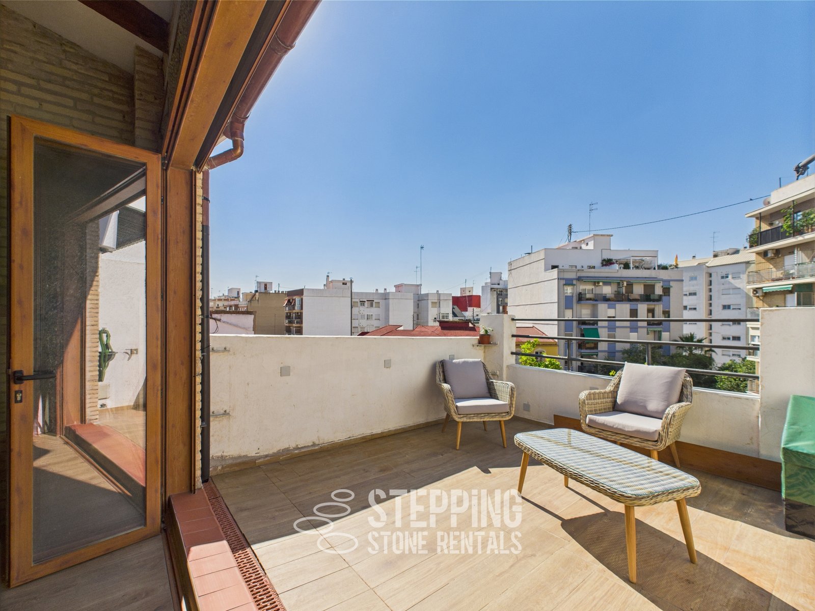 This little pearl is a great example of what everyone is usually looking for when they come to Valencia - It has a lift, it's on a pretty quiet road, It's walking distance to the Famous Turia Gardens, the Tram that will take you direct to the beach in under 15 minutes is just on the corner, 2 double bedrooms, spacious bathroom, tons of natural light and air flow, and the cherry on the top - A very big private terrace overlooking trees.