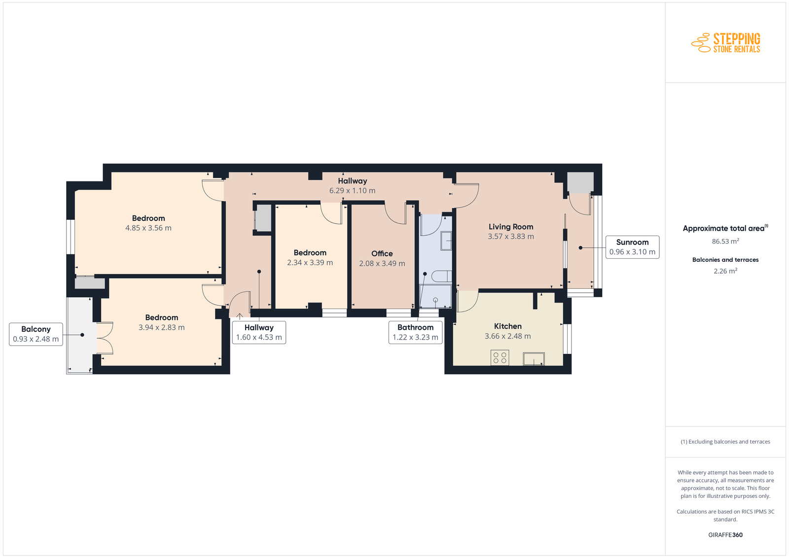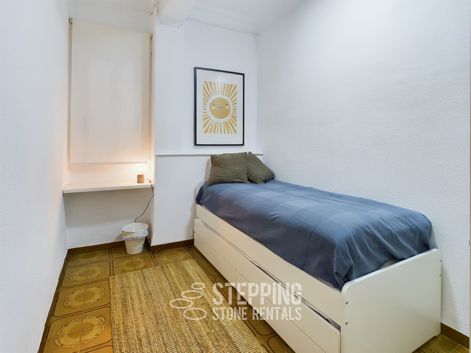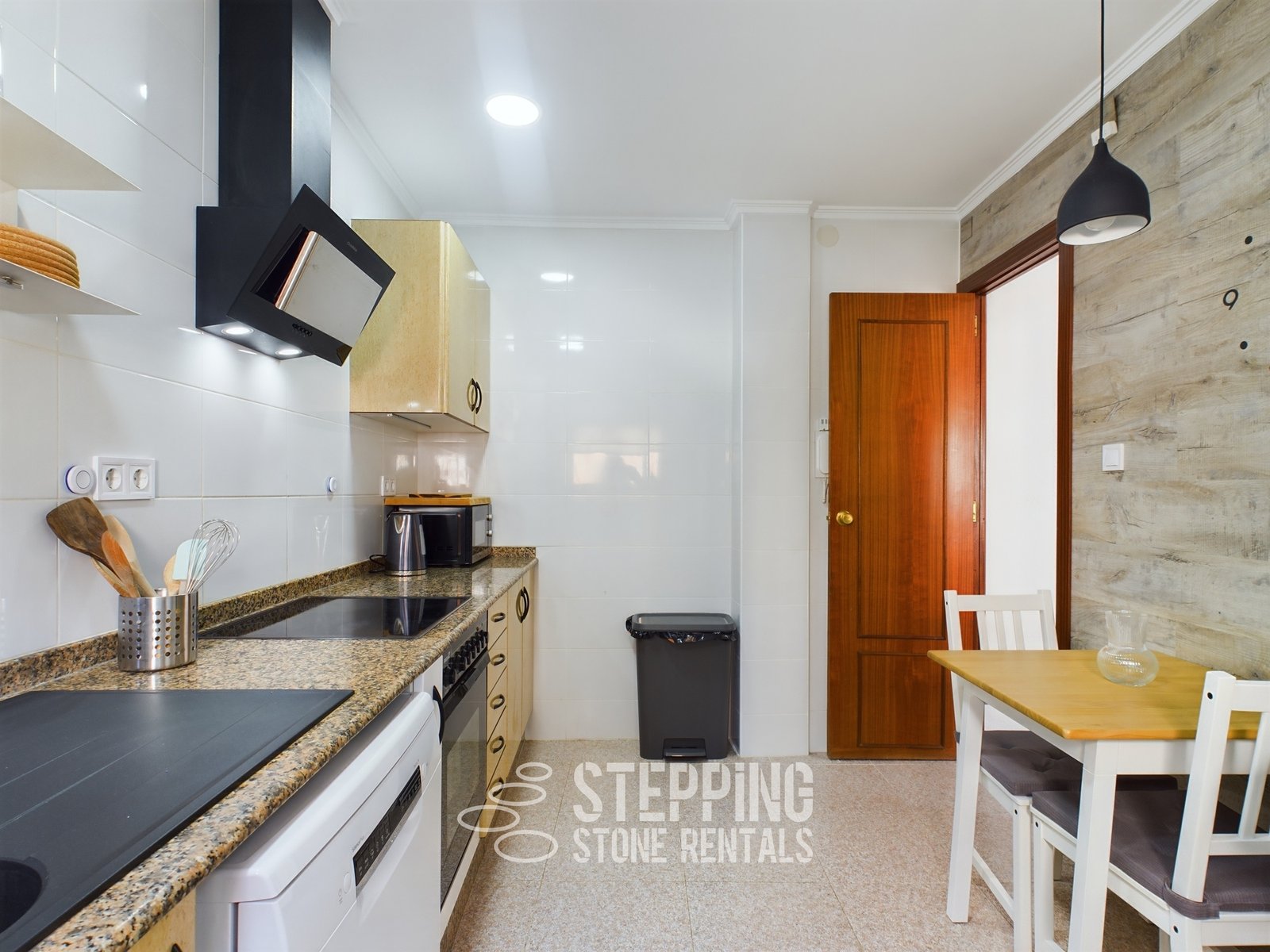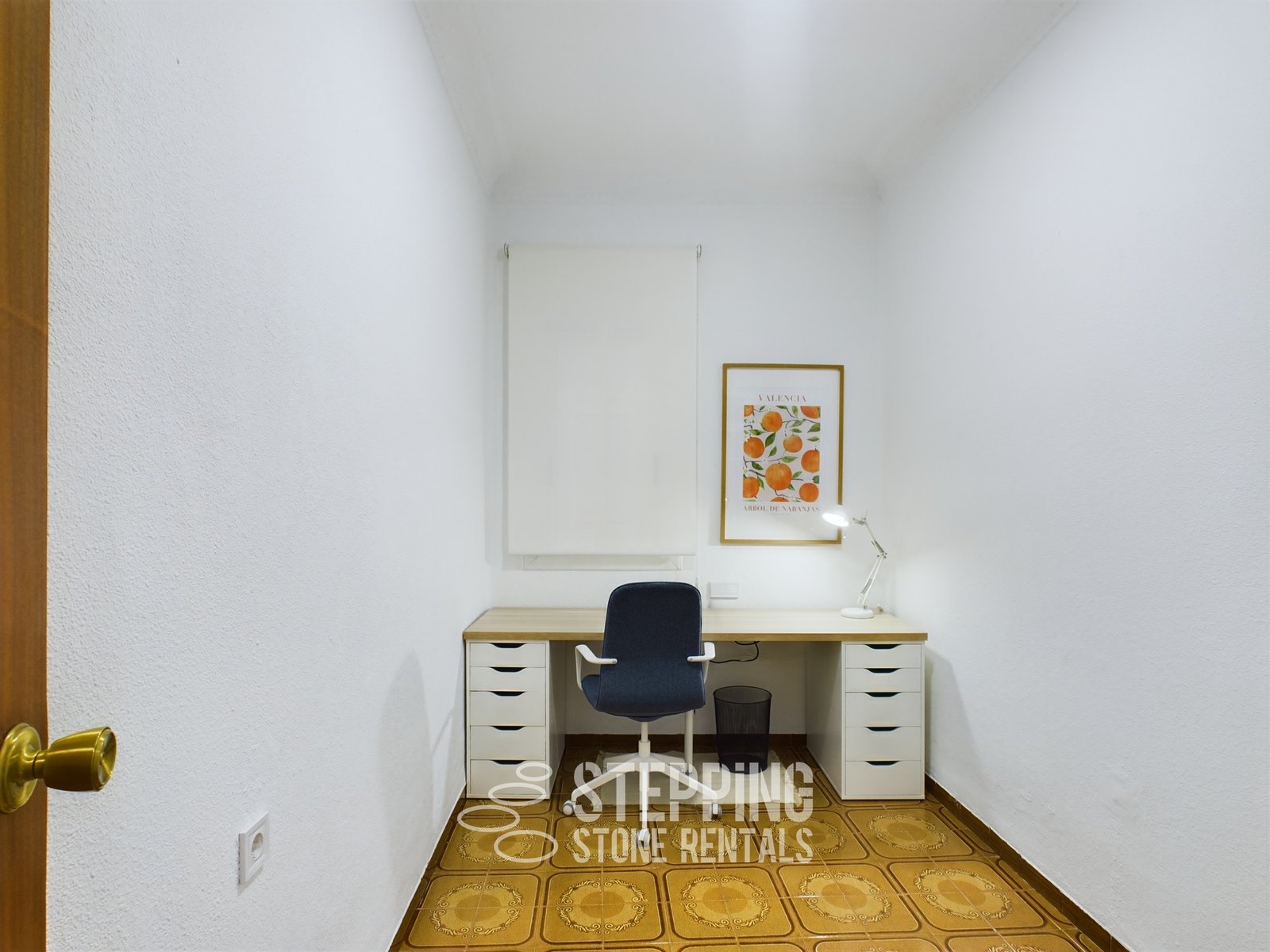 3 large bedrooms, (1 double bed, 1 single bed, and 2 single beds that can be turned into 1 double) sunny balcony and 1 designated office room + 2 storage spaces and a gallery. The kitchen has Osmosis installed too! Enjoy the convenience of having a Mercadona grocery store just across the street. :-D